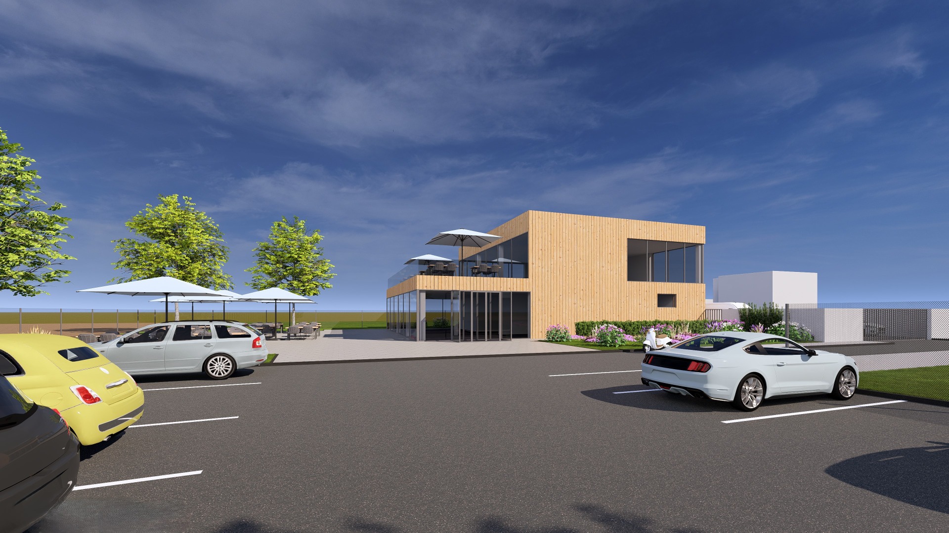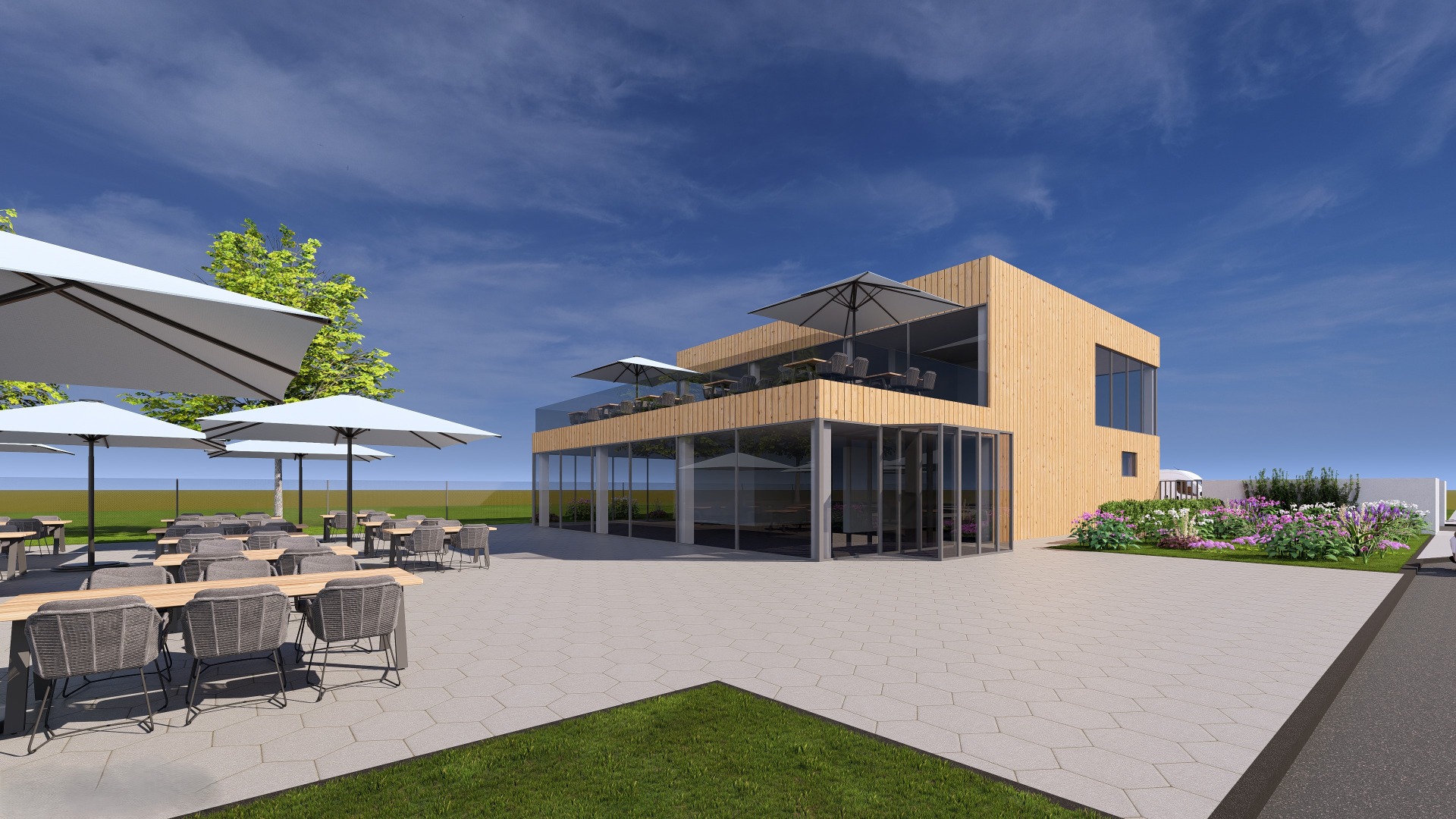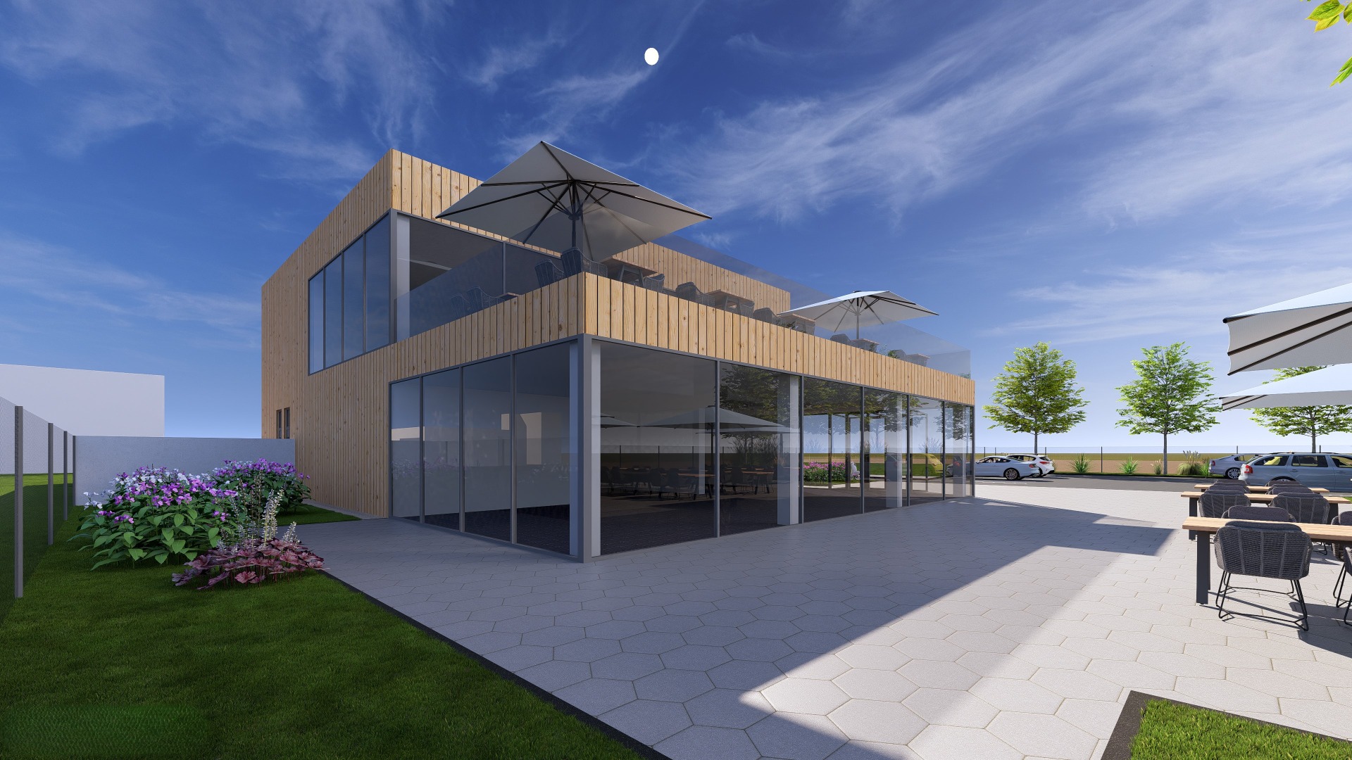 Zapomeňte na stísněné prostory. Představujeme studii moderní dvoupodlažní restaurace, která dává prostoru dýchat. Díky skeletové konstrukci jsme vytvořili otevřený a flexibilní interiér, který se přizpůsobí každé příležitosti – od rychlého oběda po velkolepou oslavu. Je zde dostatek místa pro hosty ve dvou podlažích. Velké prosklené plochy vtahují okolní dění přímo ke stolům.