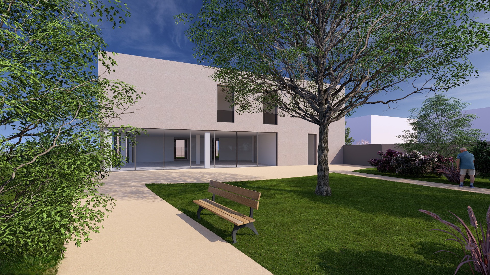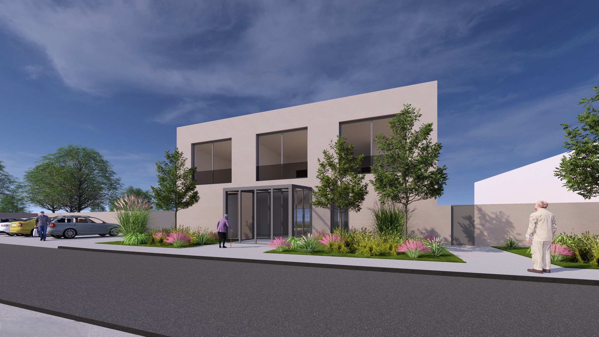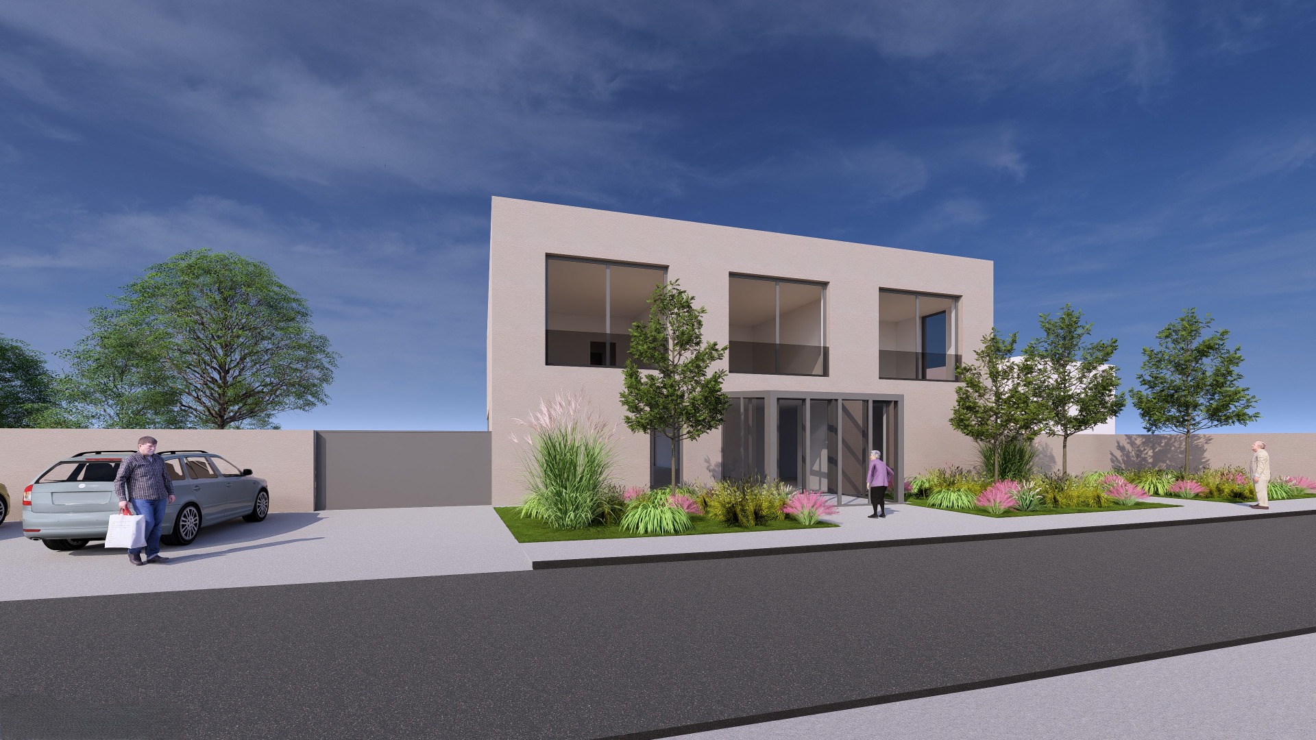 Stáří si zaslouží respekt, pohodlí a především bezpečí. Naše studie Domu pro seniory v Dolních Chabrech přináší koncept bydlení, který spojuje výhody domácího prostředí s profesionálním zázemím. Na dosud nezastavěné parcele jsme navrhli dvoupodlažní objekt, který svou měřítkem a béžovou fasádou přirozeně zapadá do okolní rodinné zástavby. Součástí přízemí je ordinace s čekárnou. Zdravotní péče je tak doslova na dosah ruky, bez nutnosti cestování. Zatímco v patře mají senioři své vlastní byty, přízemí slouží setkávání ve velké společenské místnosti s výstupem do zahrady. Dům je obklopen zelení, která má nejen estetickou, ale i terapeutickou funkci. Předzahrádka s okrasnými travinami a solitérními stromy odděluje dům od ulice a vytváří intimní zónu klidu. Celý areál je koncipován tak, aby byl bezpečný a snadno udržovatelný.