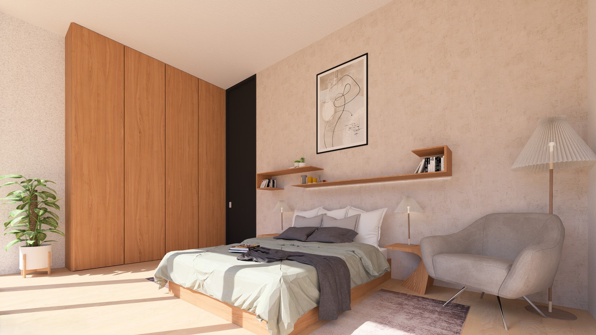 "Navrhli jsme prostor, který vás obejme. Kombinace dřeva a tlumených barev vytváří atmosféru klidu, kterou nebudete chtít opustit."